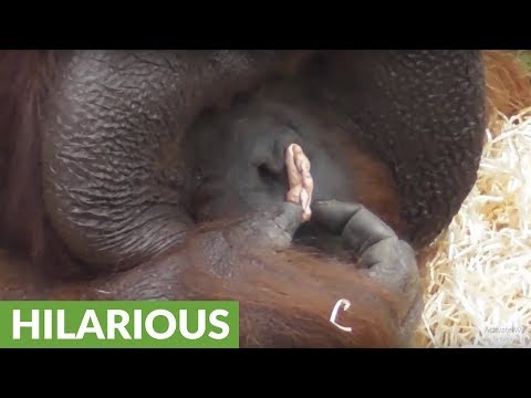 Download Mp3 - Mp4 Hilarious Orangutan Sticks Bubble Gum Up His Nose | Sticks The Real Bubble